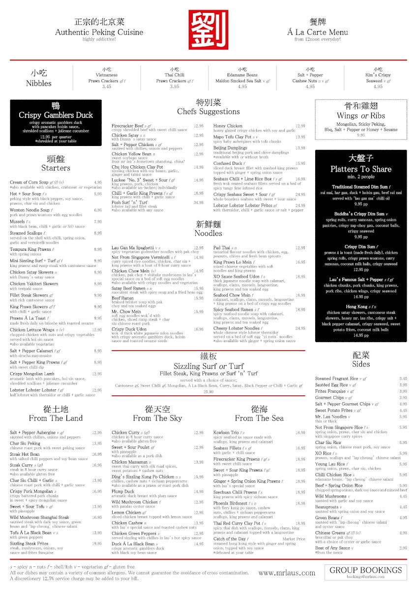 Mr Lau's Menu offers a dynamic and vibrant dining experience in the heart of Warrington, effortlessly blending traditional Chinese cuisine with contemporary flair. From the moment you open the menu, it’s clear this is more than just a typical Chinese restaurant-it’s a well-curated journey through flavour.
